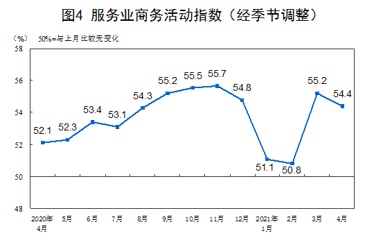 4月份,综合PMI产出指数为53.8%,比上月回落1.5个百分点,表明我国企业生产经营活动总体扩张力度减弱。